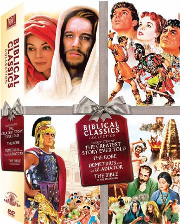 The Biblical Classics Collection includes: Disc 1: Bible, The Disc 2: Robe, The Disc 3: Greatest Story Ever Told, The Disc 4: Demetrius & The Gladiators