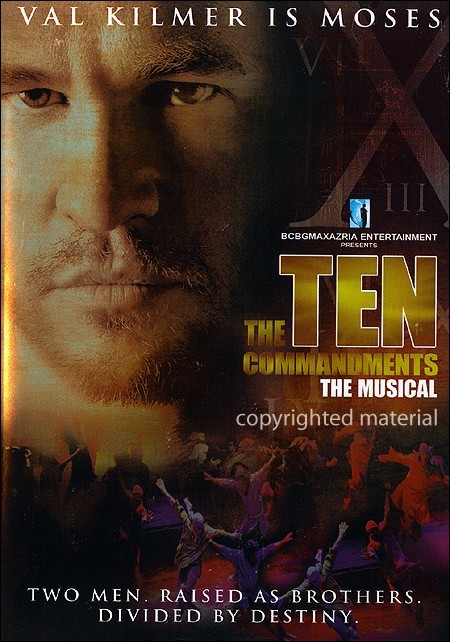 Val Kilmer Is Moses--Through the magic of musical theatre, one of the world's greatest stories has been reborn. With a stunning new vision, The Ten Commandments: The Musical brings to life the gripping tale of two brothers, Moses and Ramses. United by love, divided by destiny, they lead their two nations in an epic struggle between slavery and liberty. Starring Val Kilmer live at the Kodak Theater in Hollywood, this spectacular presentation directed by Emmy Award nominee Robert Iscove and based on the original hit by Elie Chouraqui feature music by pop icon Patrick Leonard, lyrics by two-time Emmy Award winner Maribeth Derry, costumes by acclaimed designer Max Azria, and choreography by four-time MTV Video Music Award winner Travis Payne.-- The Hebrews were slaves in Egypt 3,300 years ago. When Moses, a Hebrew baby raised as a brother to the Egyptian prince, learned of his true origins, he was thrust into a new life, leading his people to freedom. But liberty was not enough. To survive and thrive, they had to discover the rules of human decency. The Ten Commandments. The story that had inspired billions of people now becomes a call to the world for peace, love and brotherhood.